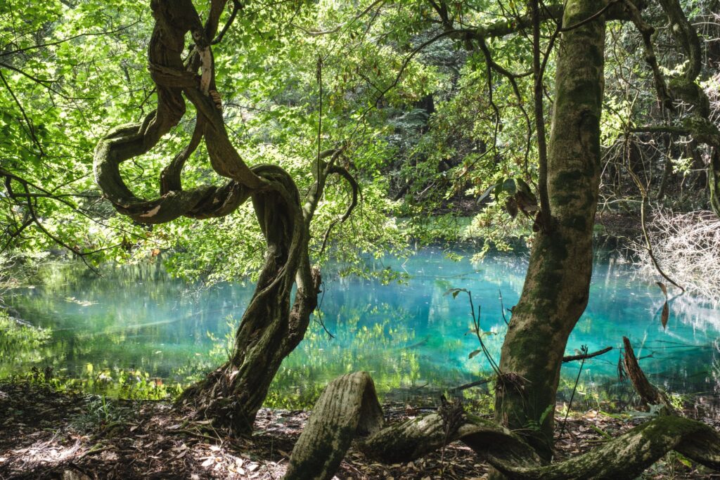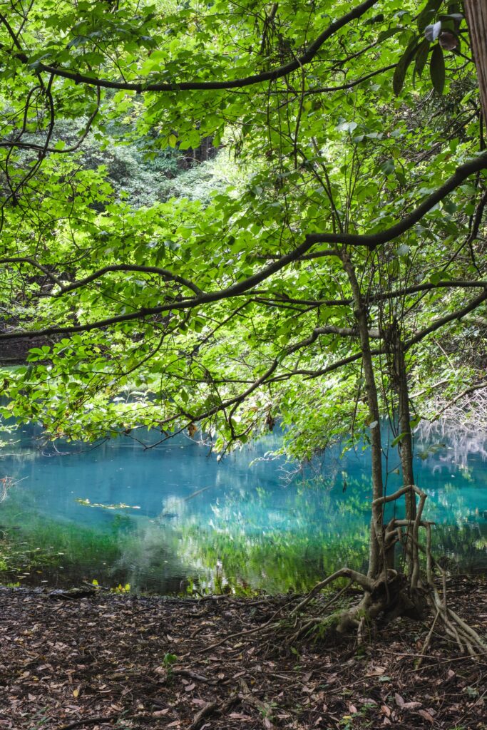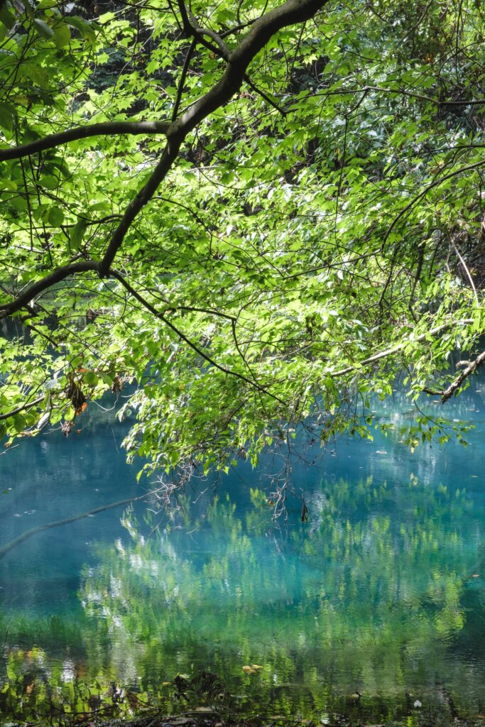 北海道・摩周湖の湧き水が作る神の子池を思わせる綺麗さですが、景色全体の鮮やかさはこっちが上かも。