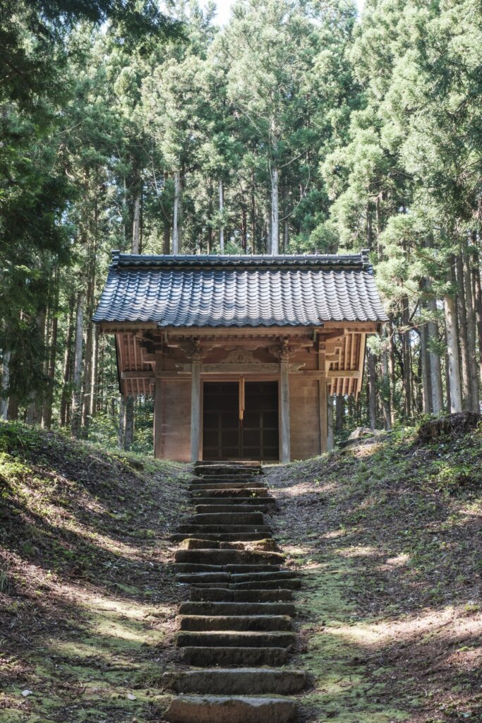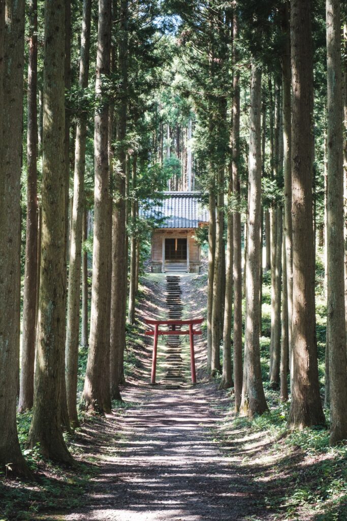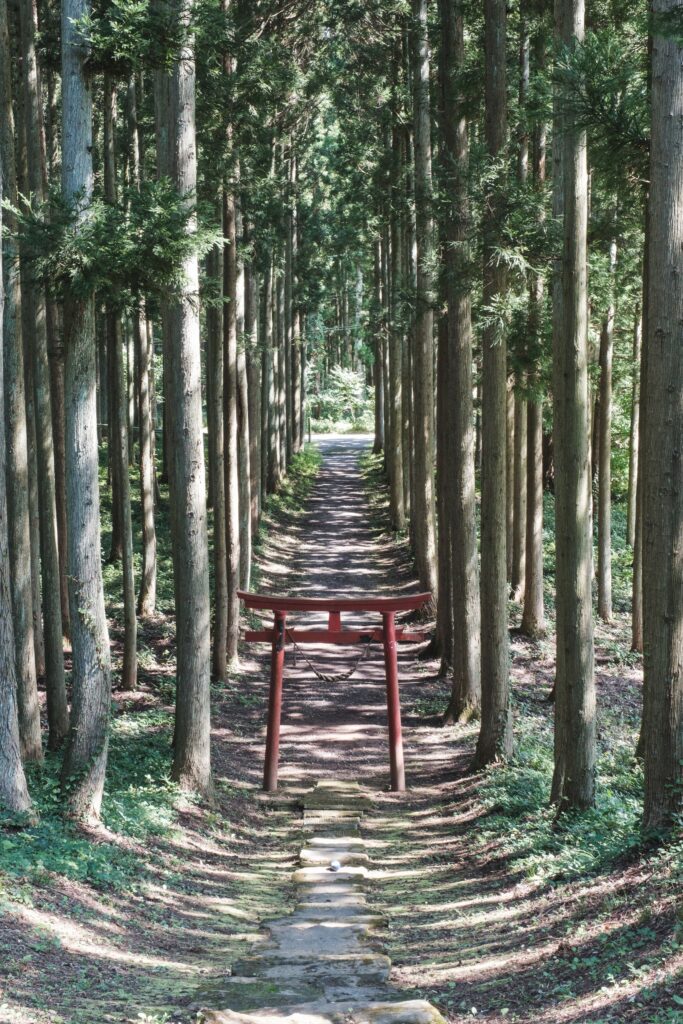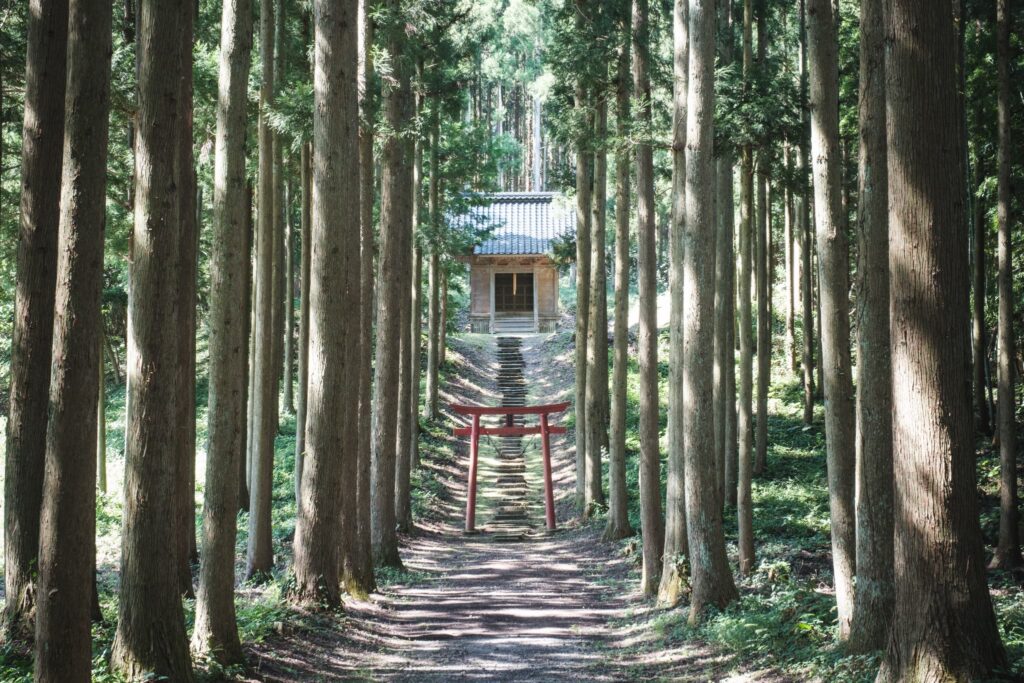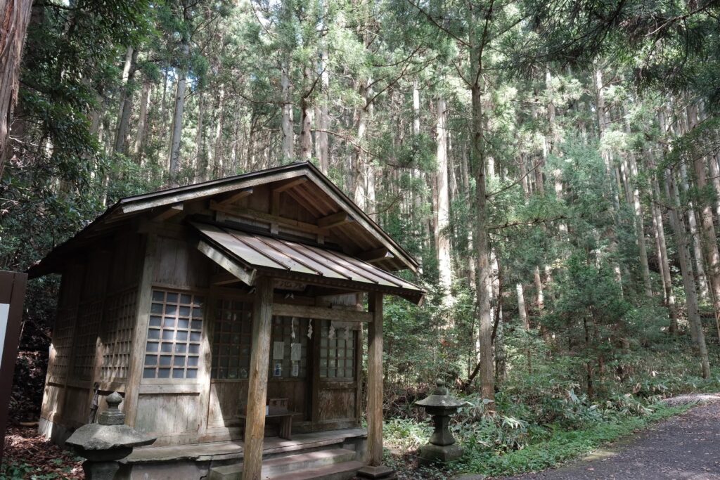 ブナ林に囲まれてひっそりと佇む小さな神社。