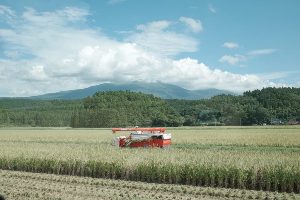 田んぼの中を進んで駐車場に着いたのですが、収穫前の稲と鳥海山の風景が綺麗すぎたので写真を撮りに歩き戻りました。