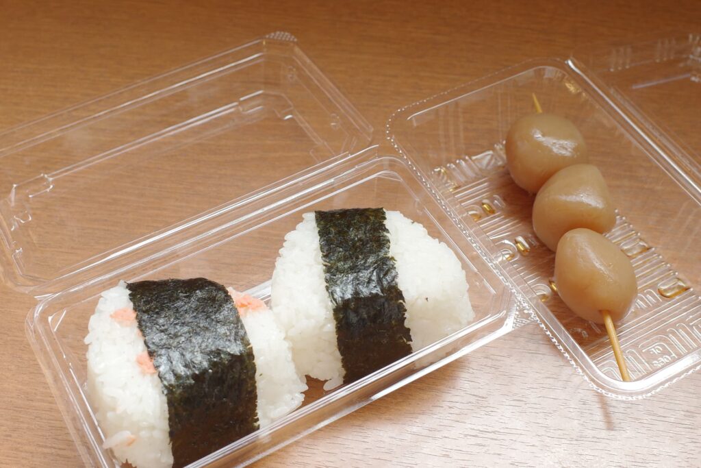 山形ブランド米「つや姫」の新米おにぎりと、山形名物「玉こんにゃく」です。