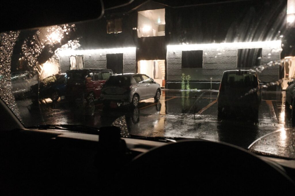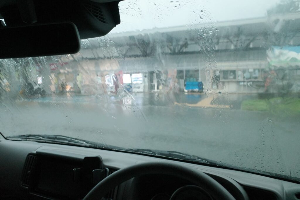 そしてまさかの到着したタイミングで大雨が降り始めました。