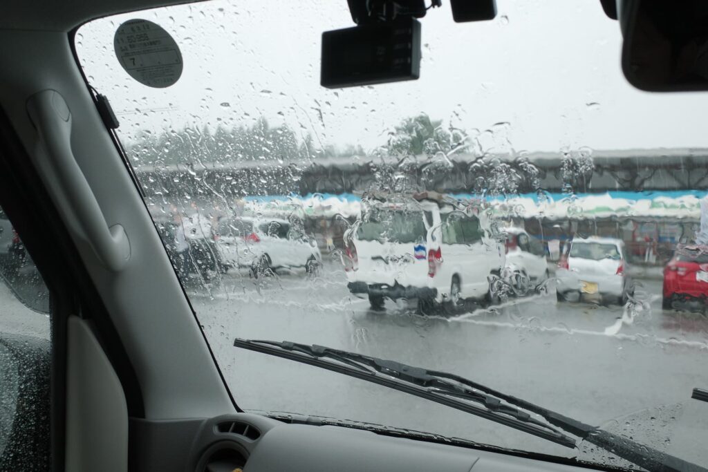 昨晩に今朝の雨を予想してトイレから近い場所に車を停めたのですが、そんな対策は意味ないほどの濡れ方…