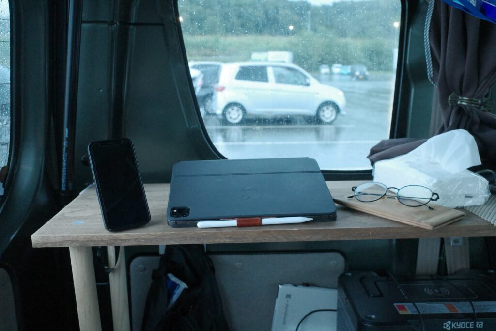 そして、再び道の駅尾花沢に戻り、車が雨に揺られる音を聞きながら、午後もライターの仕事を進めました。