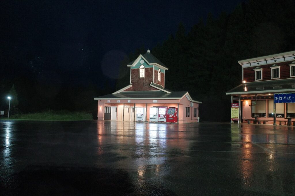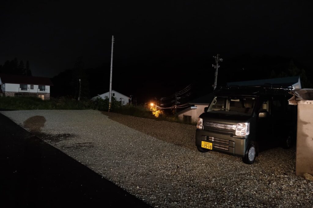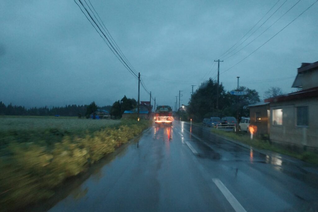 暗くなり始めたころ、雨が少しおさまる予報だったため、尾花沢でお目当ての観光地へ向かいます。
