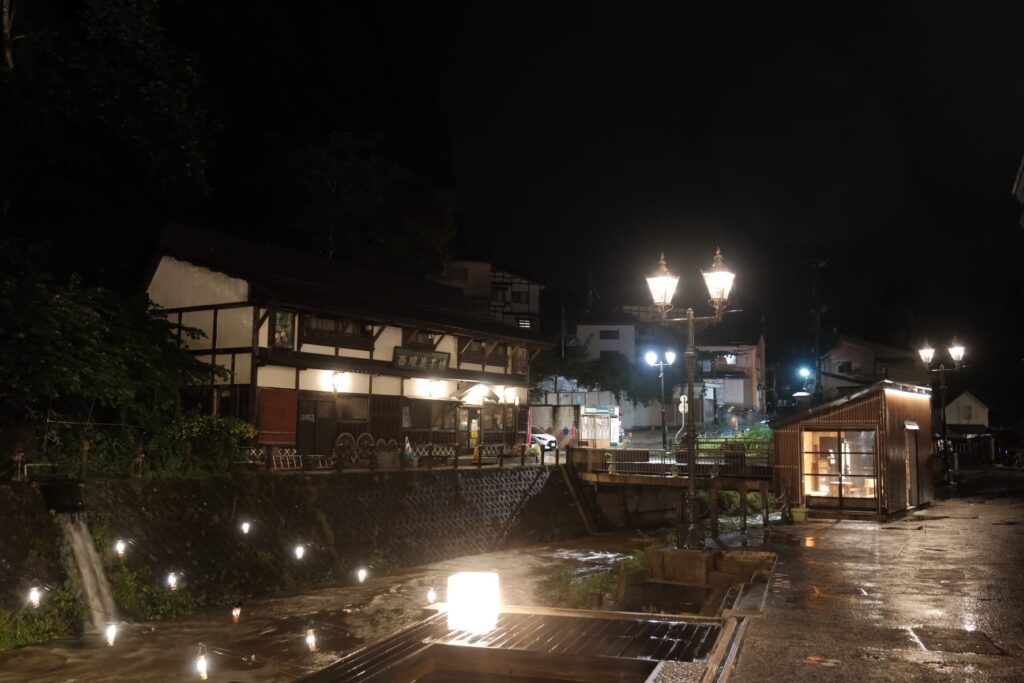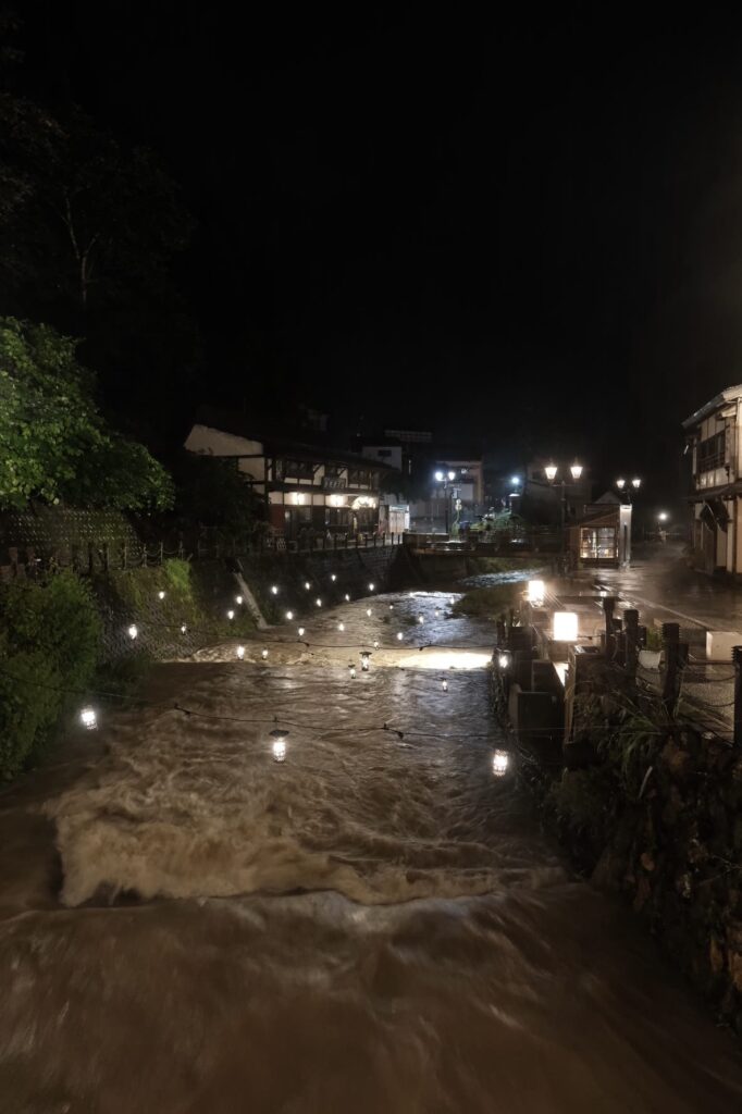 日中はすさまじい豪雨に遭い観光はできませんでしたが、夜は山形といえばな有名温泉地を訪れました。