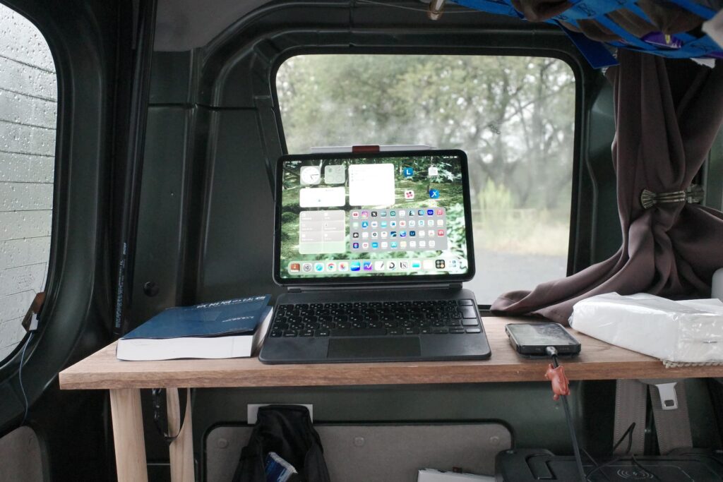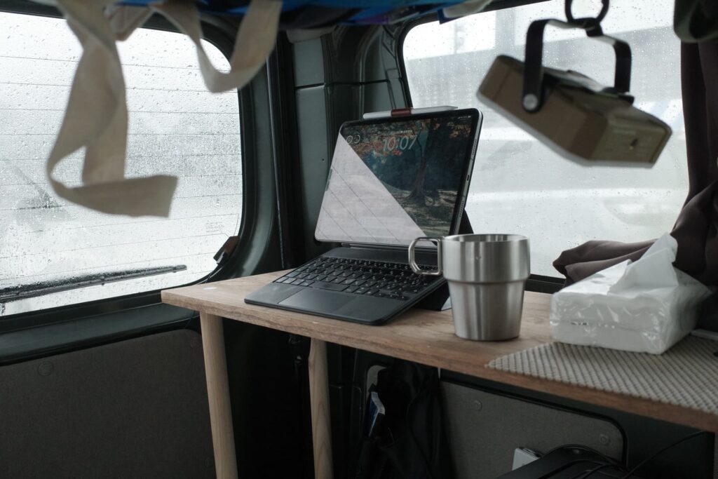 午後もひたすら雨が降り続いてできることがないので、大人しく車で仕事を進めます。