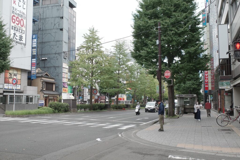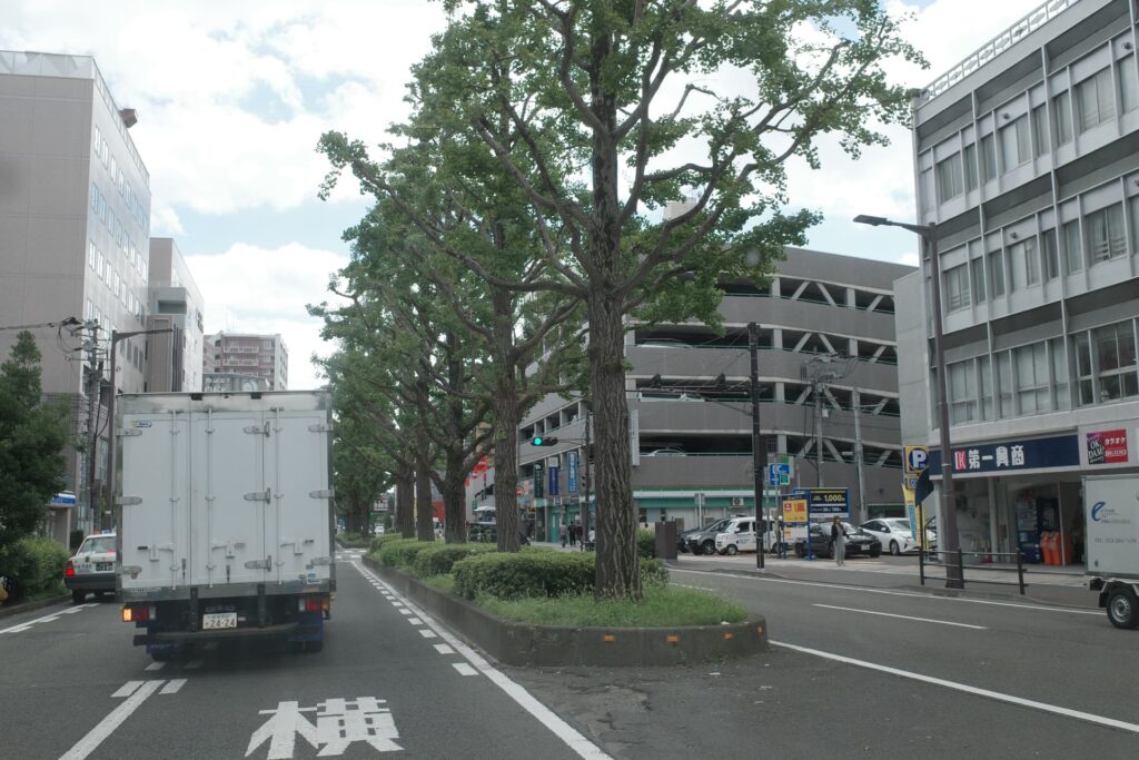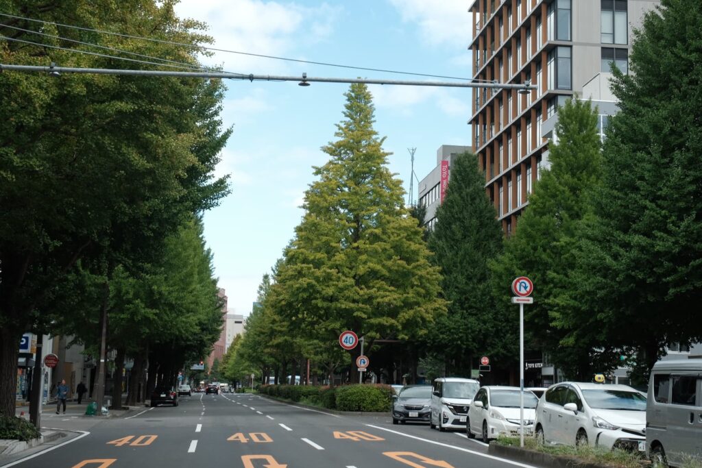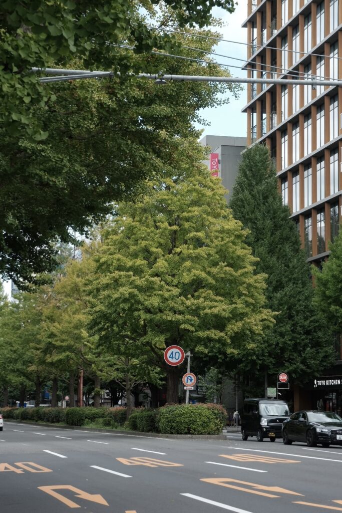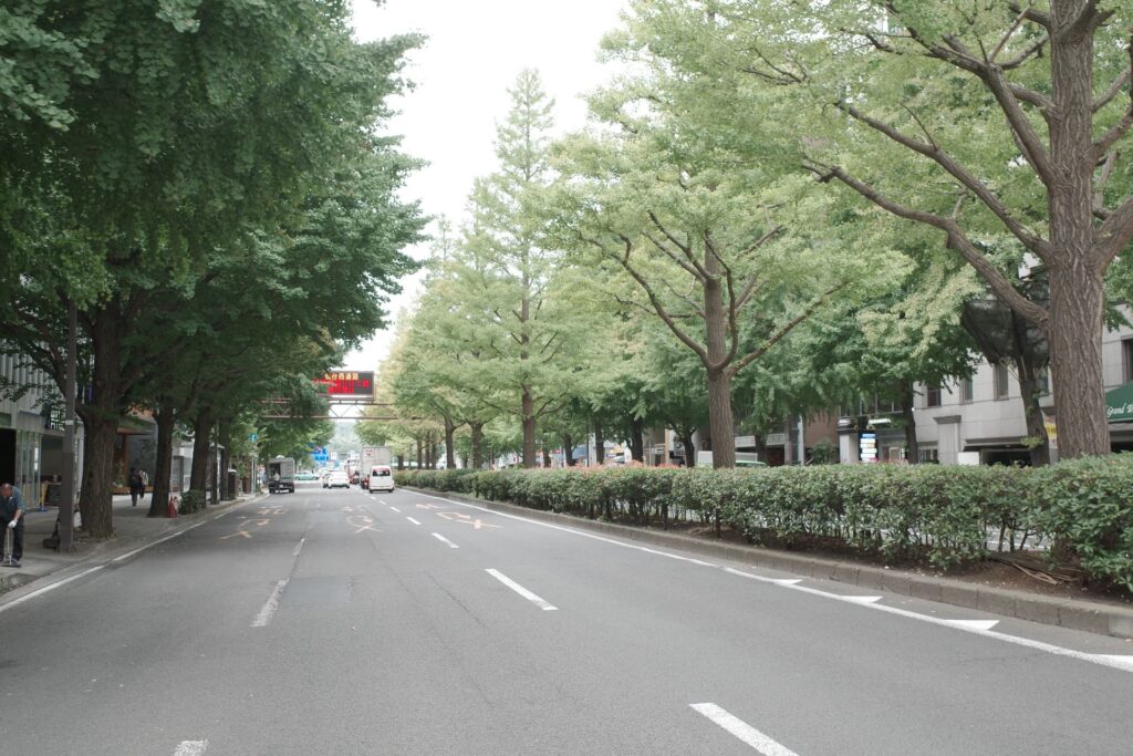 人も車も往来が激しく都会な雰囲気ですが、街の真ん中に緑が連なる景色があるのいいですね。
