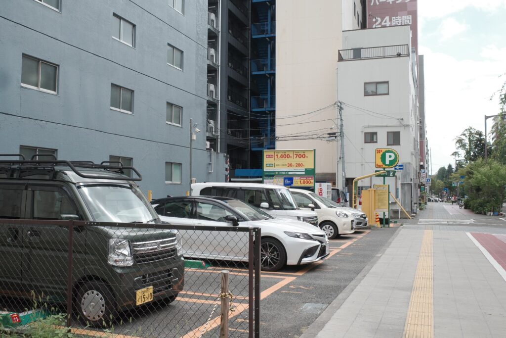 駐車場から繁華街のほうへ歩いてきます。