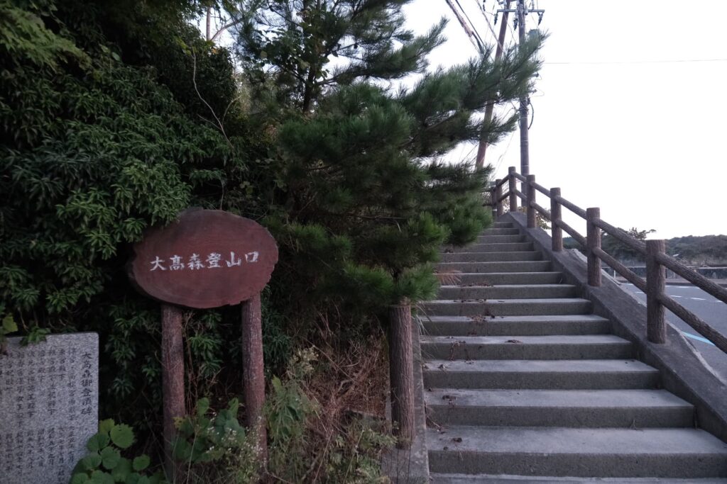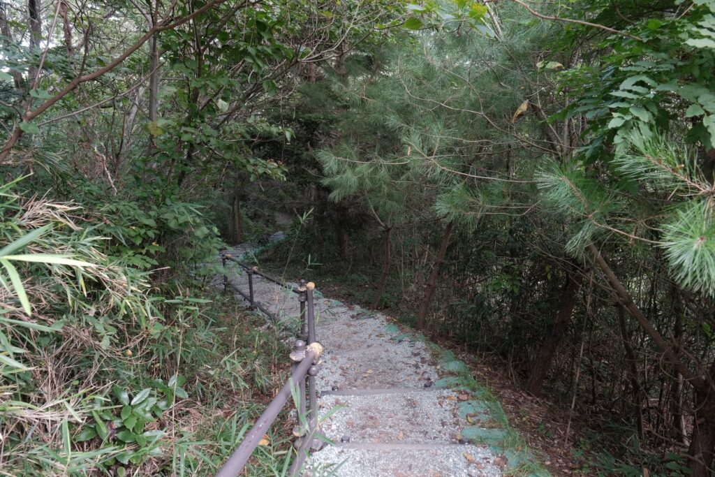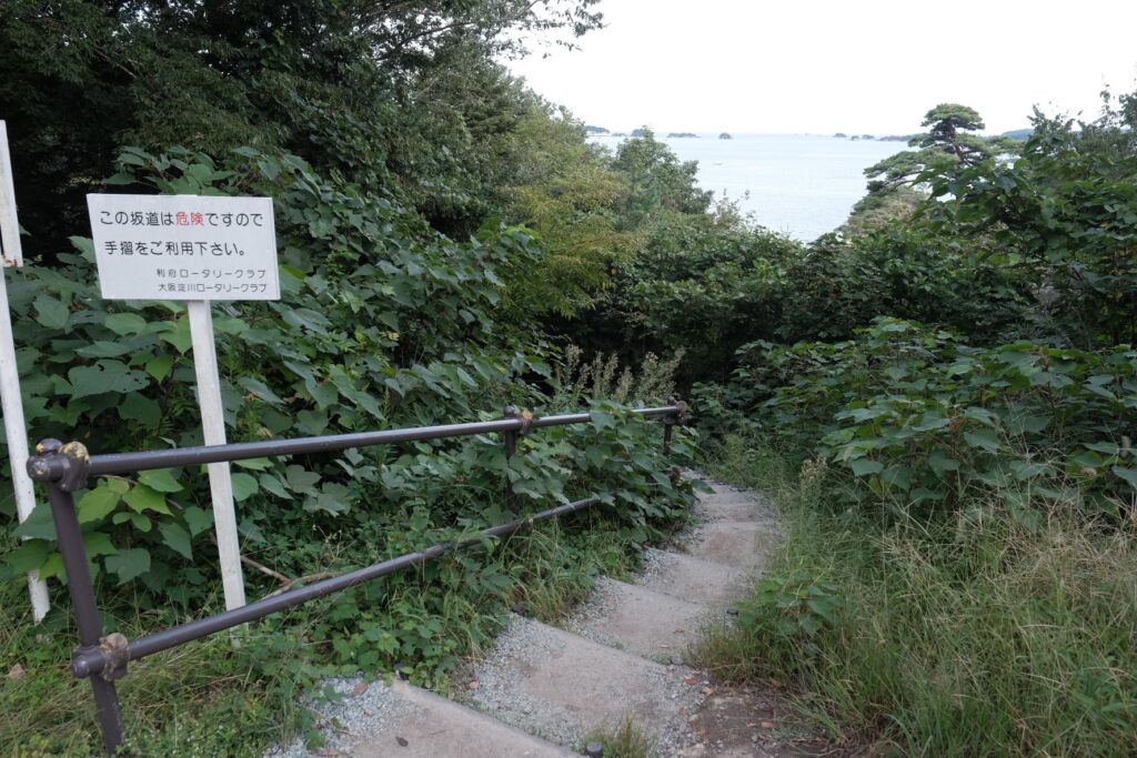 松島に来た日に爆焼けに当たったことはラッキーですが、展望台から松島の海景色とともに見れなければ残念すぎるということで、ここから登山道をダッシュします。