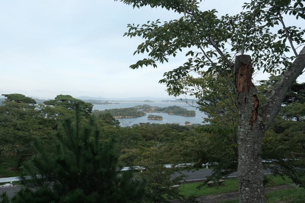 奥には松島の島々が見えます。