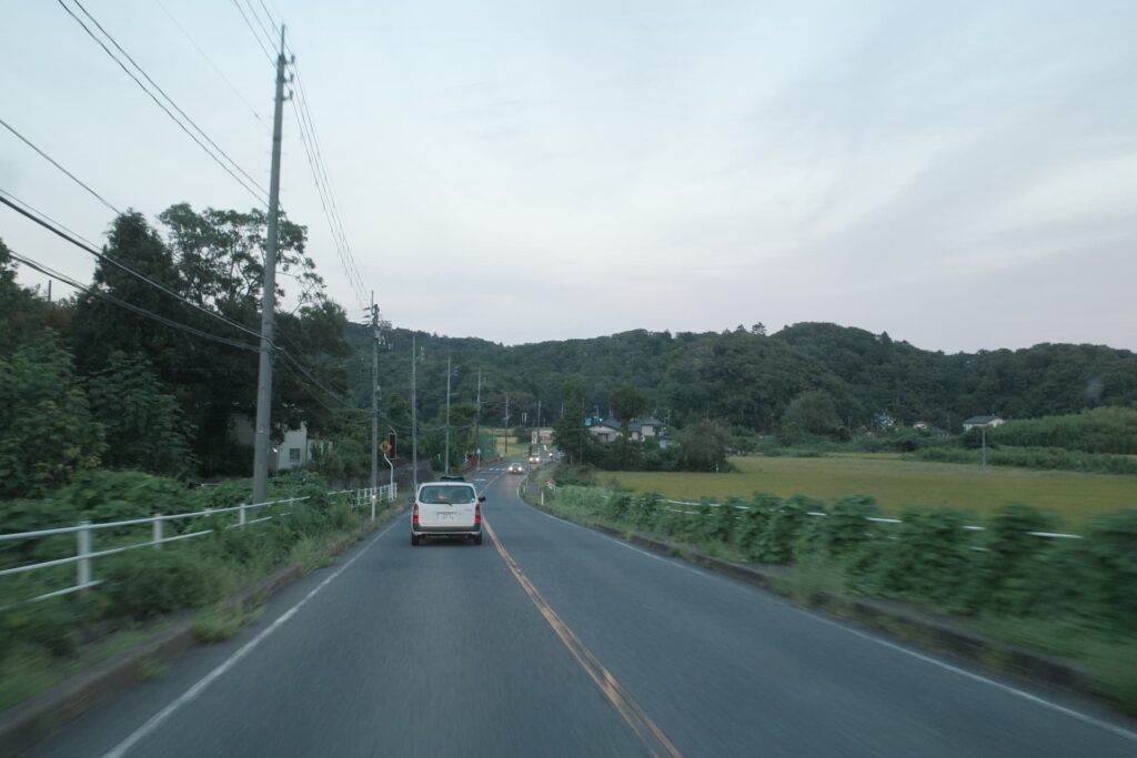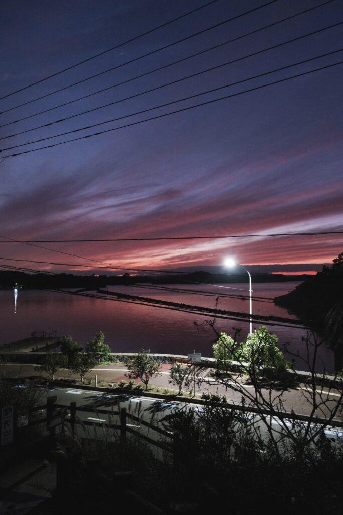 暗闇にビビりながら道路まで戻ってきた時、夕焼けの最後の空がなんとも惹かれる景色を作ってくれていました。