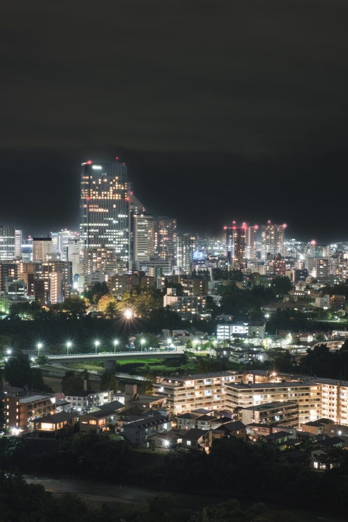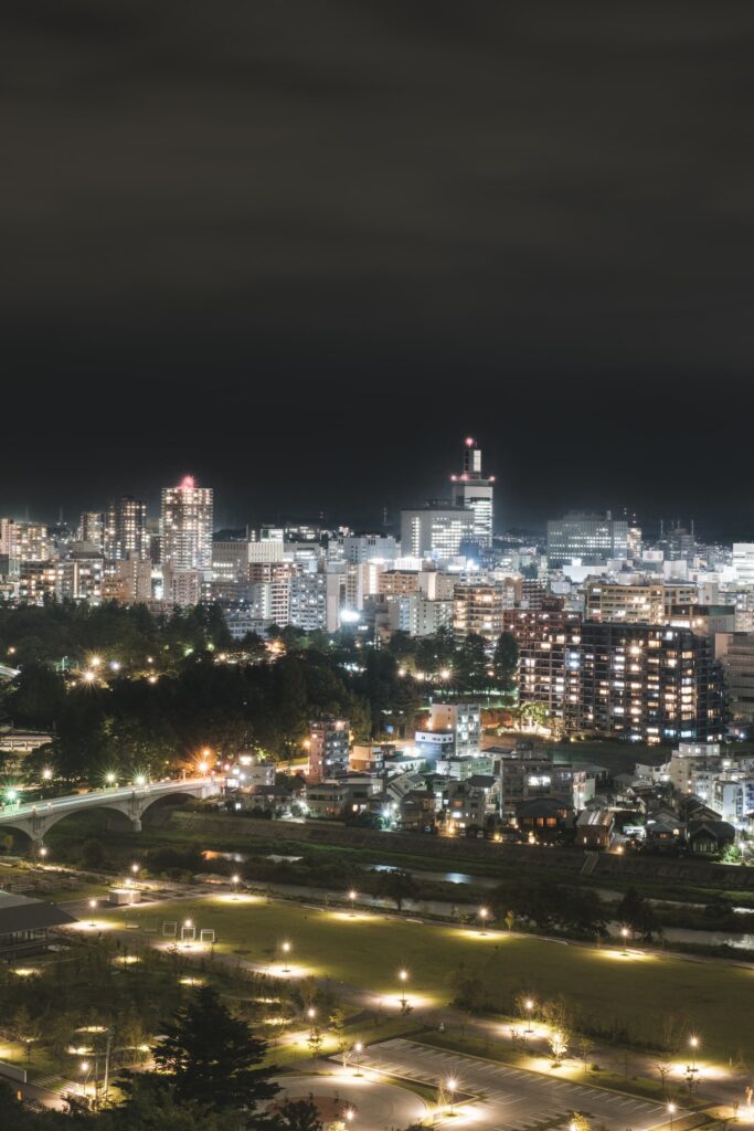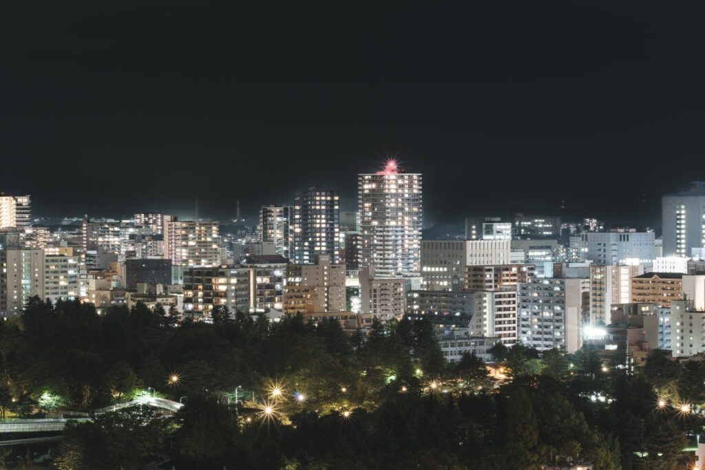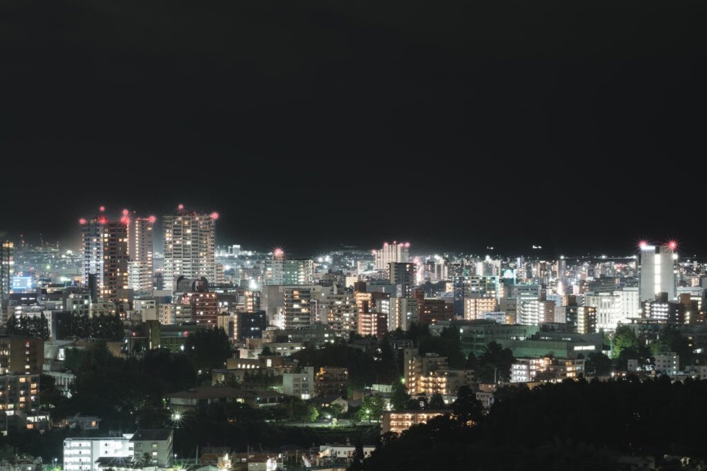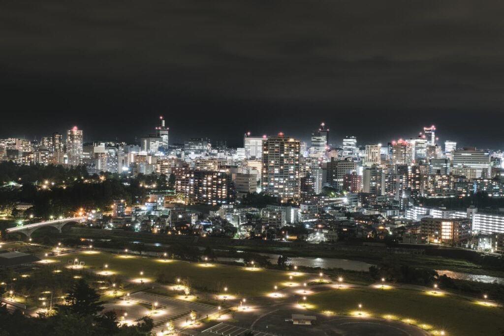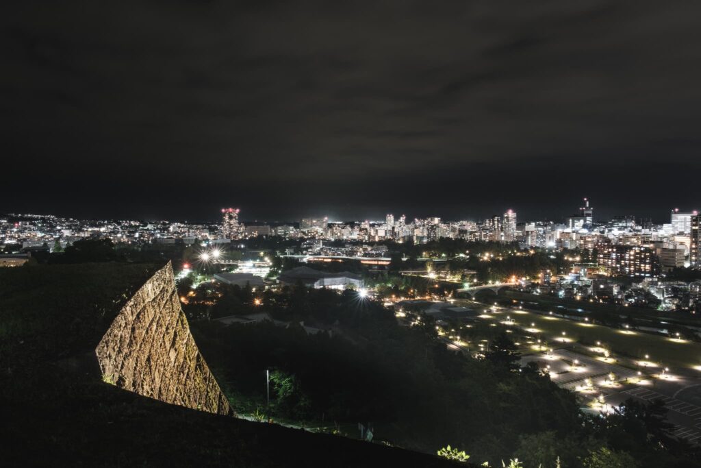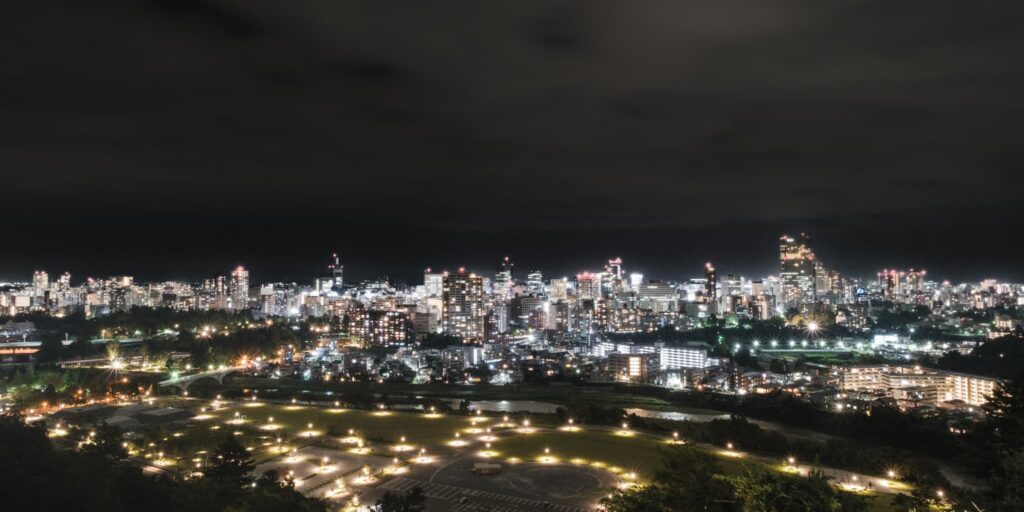 そんな仙台城跡から見える夜景がこちら。
