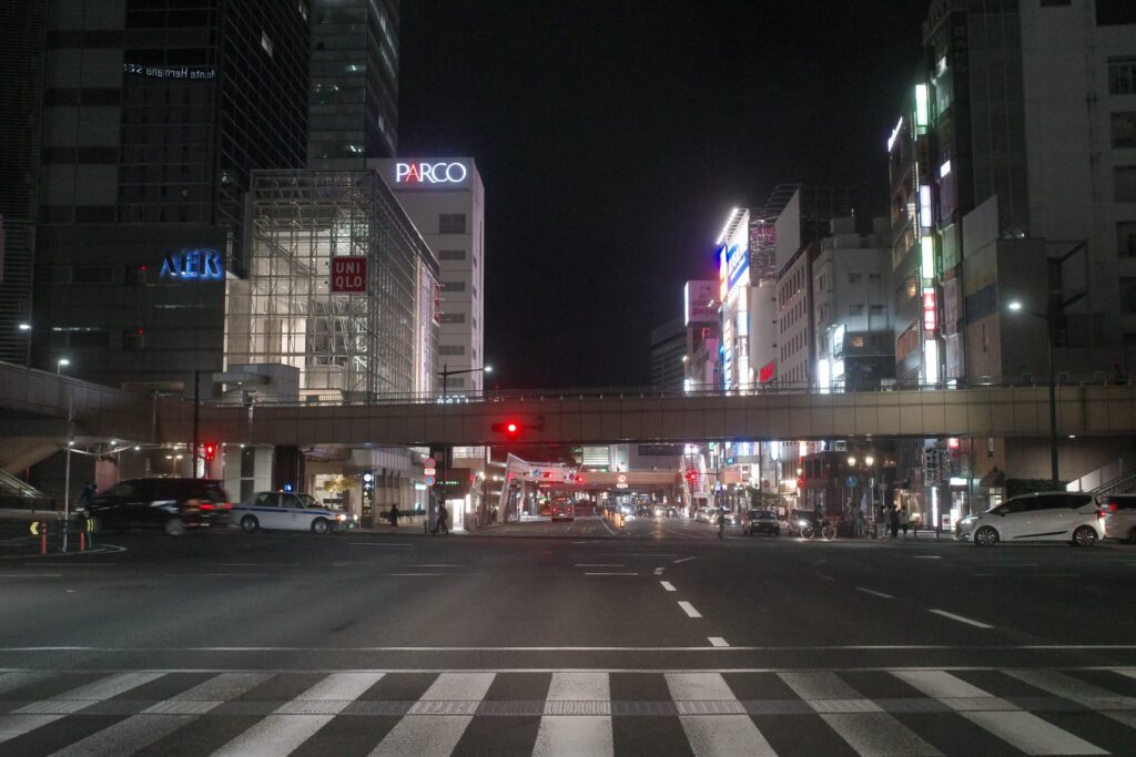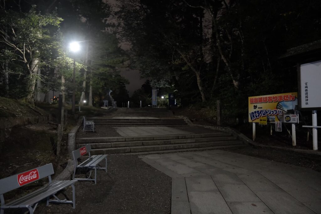 かなり真っ暗な道のりでしたが、先ほどの松島・大高森と違って人の気配があるので安心です。