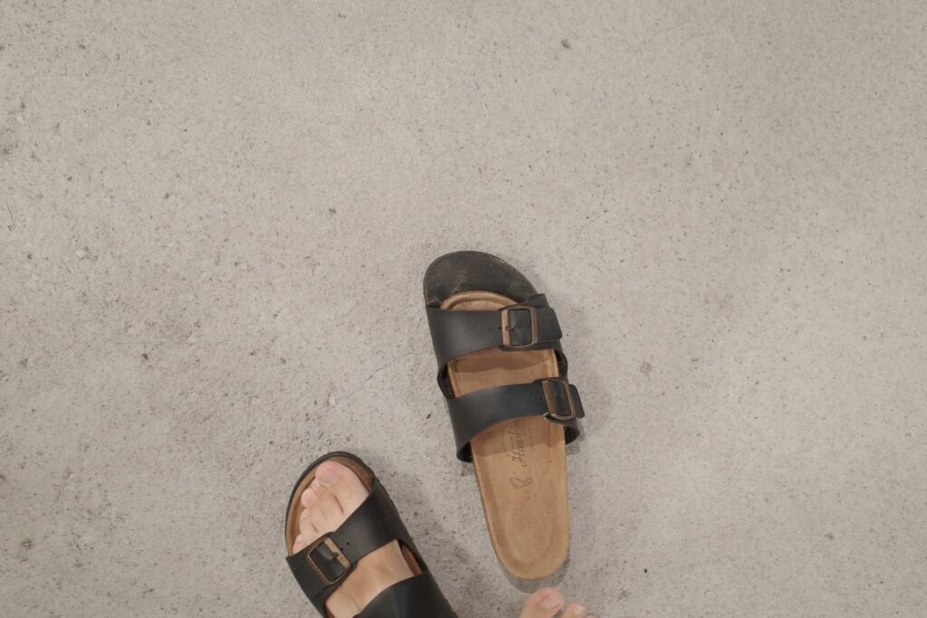 山形県で豪雨にさらし続けたことでサンダルの底が剝がれてしまいました…