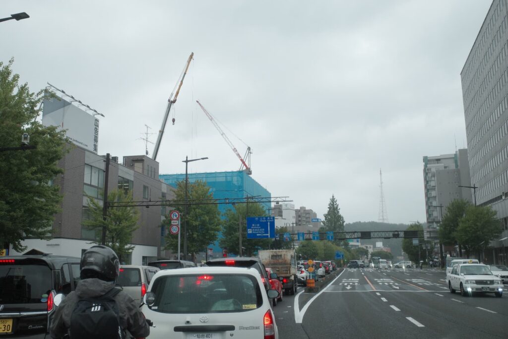 お目当てはイオン横の交差点から見える「仙台大観音」の景色。
