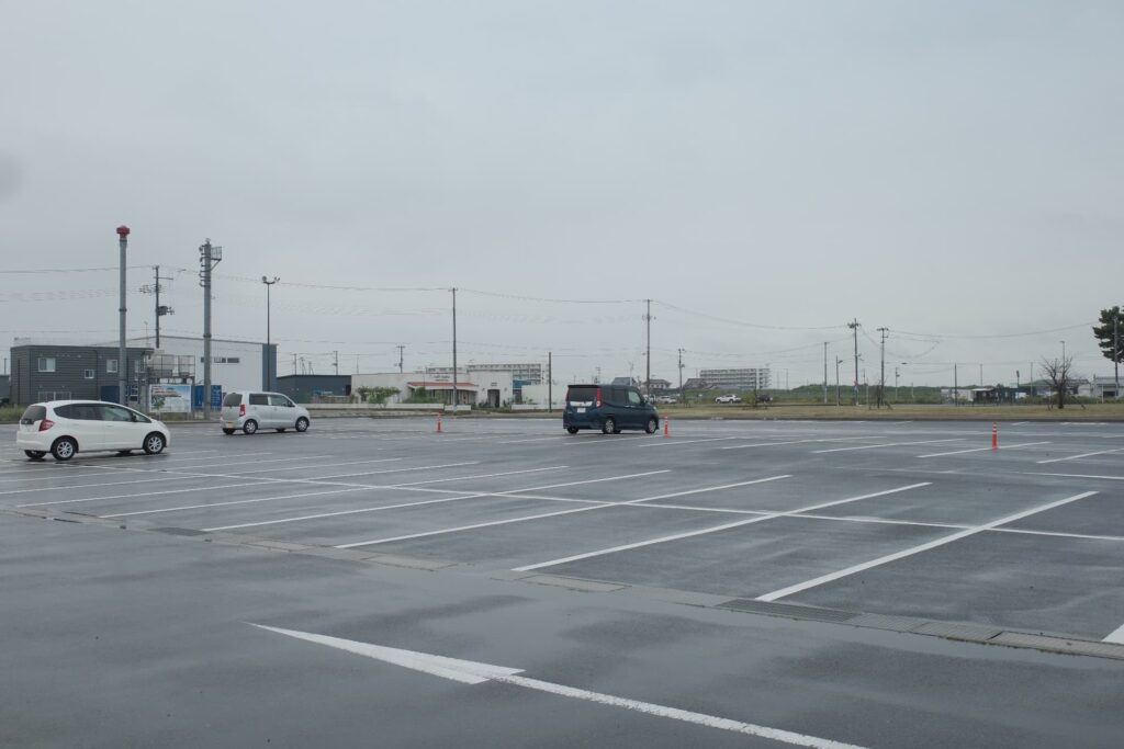 お店の向かい側にある広い公園駐車場に車を移動しました。