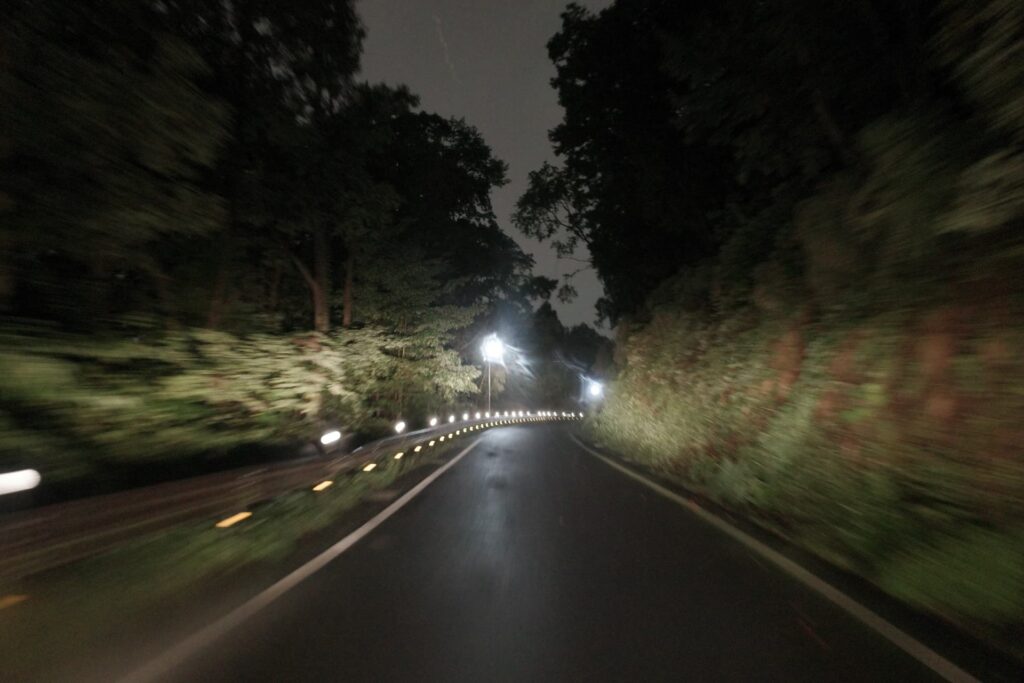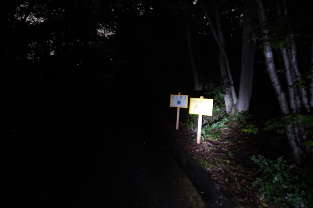 灯りが無さすぎてライトを照らさなければ一歩も進めない真っ暗な道を進みます。