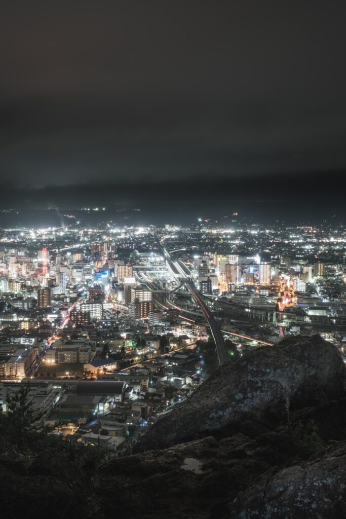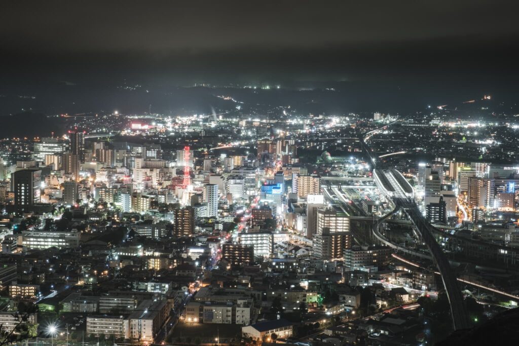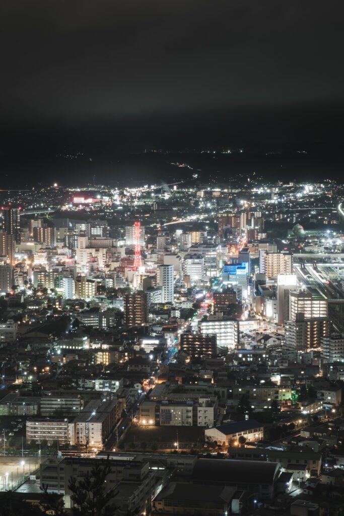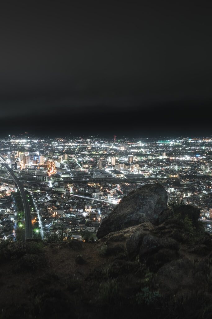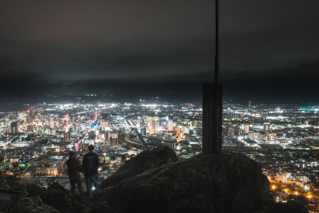 眼下に福島駅を中心に広がる県庁所在地の街の明かりが輝きます。
